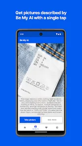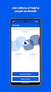 People who are blind or have low vision now have three powerful tools in one with Be My Eyes. Worldwide more than half a million people who are blind use the innovative Be My Eyes app through their smartphone to get visual description when they need it. Connect with more than 7 million volunteers. Or use the latest AI image describer. Or connect with dedicated company representatives to help with their products. All in one app. Connect with Be My Eyes volunteers speaking 185 languages and avai